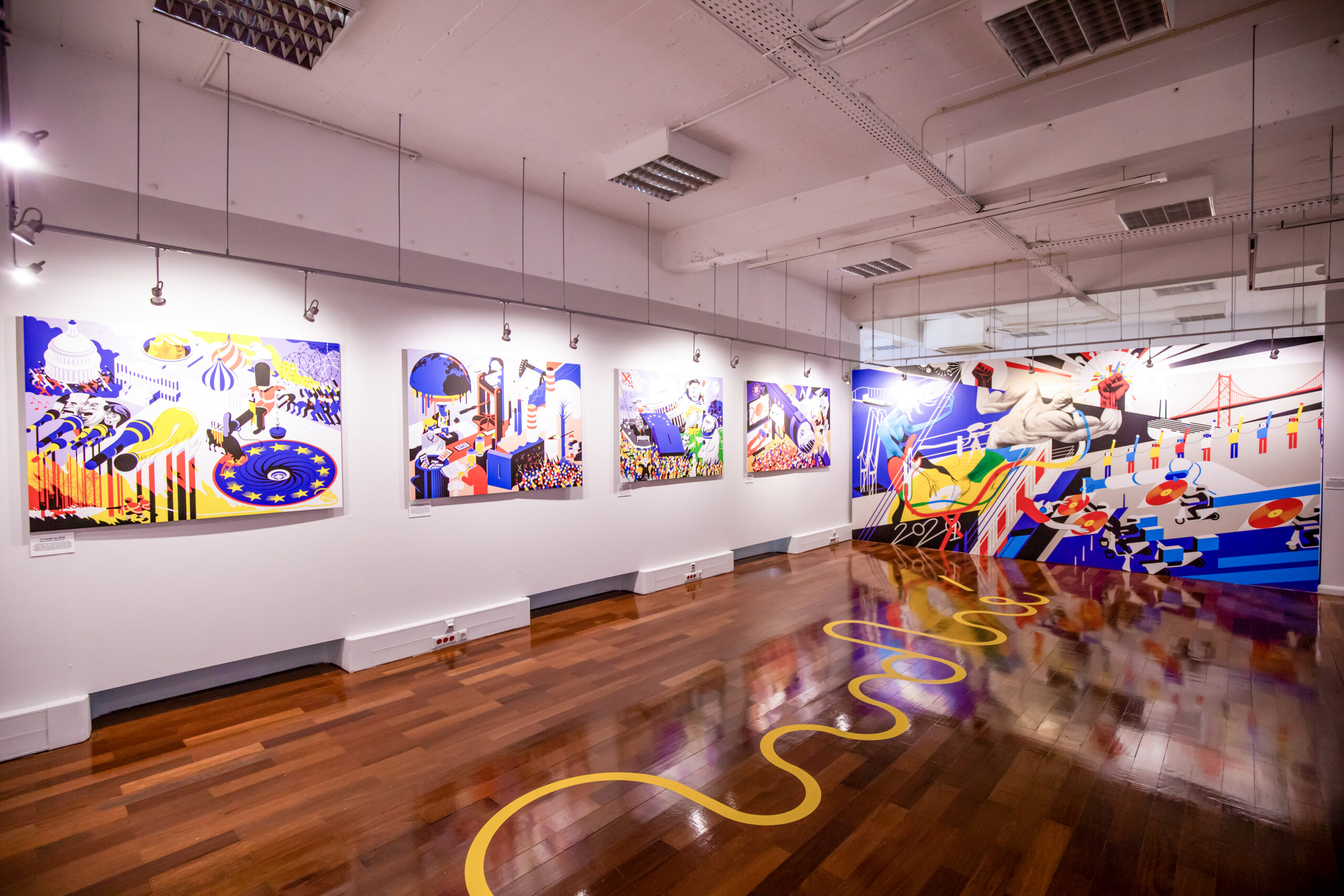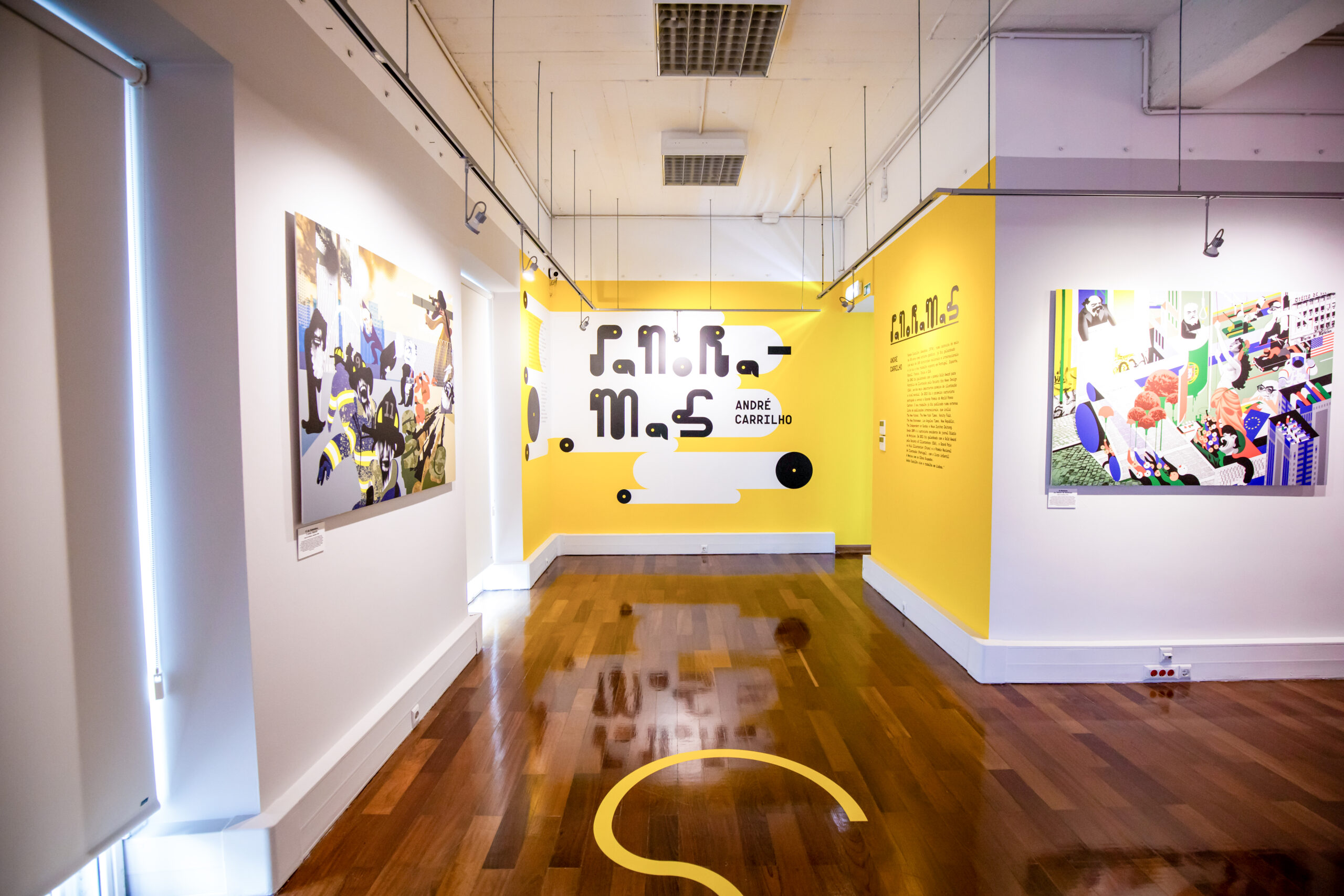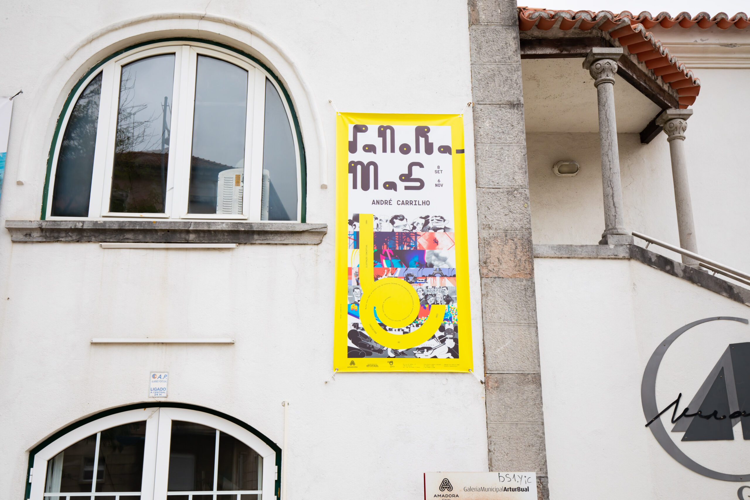 Exhibition design and visual identity of the Panoramas exhibition by André Carrilho, at the Artur Bual Municipal Gallery/Casa Aprígio Gomes, in Amadora.